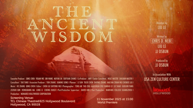 2025年11月11日,由122cc太阳集成游戏122cc太阳集成游戏刘乐老师主创,美国好莱坞Monarex电影公司出品,与已故好莱坞著名导演、制片人克里斯·蒂·里比(Chris D. Nebe)合作完成的文化纪录片《古老智慧》,在美国洛杉矶好莱坞中国戏院举行全球首映。国内外多家媒体——中国日报网、美洲华联社、广州日报新花城对此影片进行了报道。影片以影像语言传递中国禅宗智慧,展现中华文化的深邃与当代价值,成为中国文化走向世界的生动实践,也是我院“以生为本、实践育人、融合培养”办学理念的精彩体现。