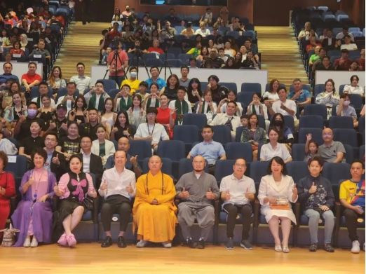 (《少林传武者》纪录片首映活动的出席嘉宾合照。前排右起为蔡志权、翁诗杰、达摩拉达那长老、张天赐等。)