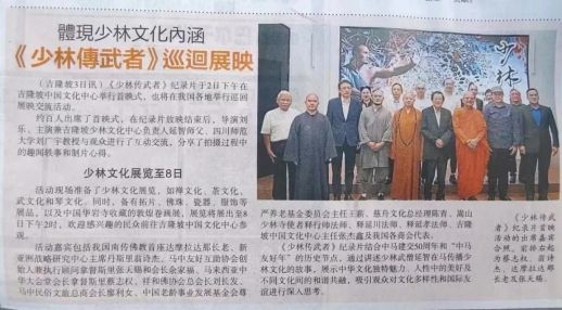 (马来西亚当地媒体评论:纪录片《少林传武者》结合中马建交50周年和“中马友好年”的历史节点,仿佛是一个精心准备的礼物,以优秀影像故事为中马人民的文化交流的同心桥添砖加瓦,推进中马双方友谊往更深更远的步伐迈进。)
