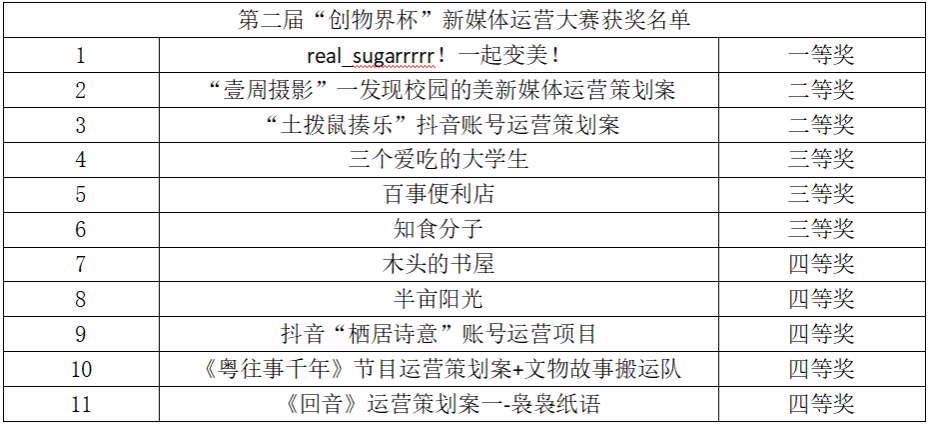 至此,第二届“创物界杯”新媒体运营大赛圆满结束。新创基地由衷祝贺本次比赛获奖的同学,也期望未来可以有更多的同学参与到我们的赛事,投身于新媒体的学习与建设当中。各位新媒体人,我们下次再会。
