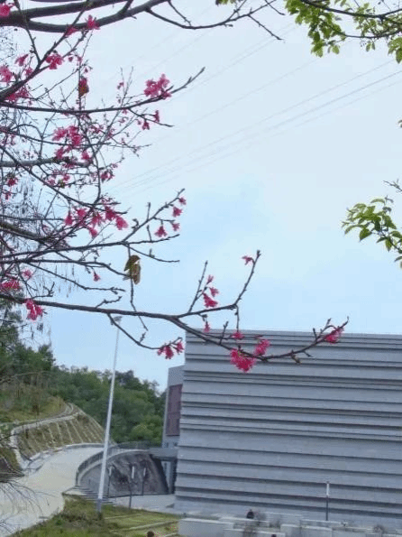 沿着市博物馆侧的小路上山,一路上还能欣赏到小巧精致的樱花,春日烂漫,花香四溢。