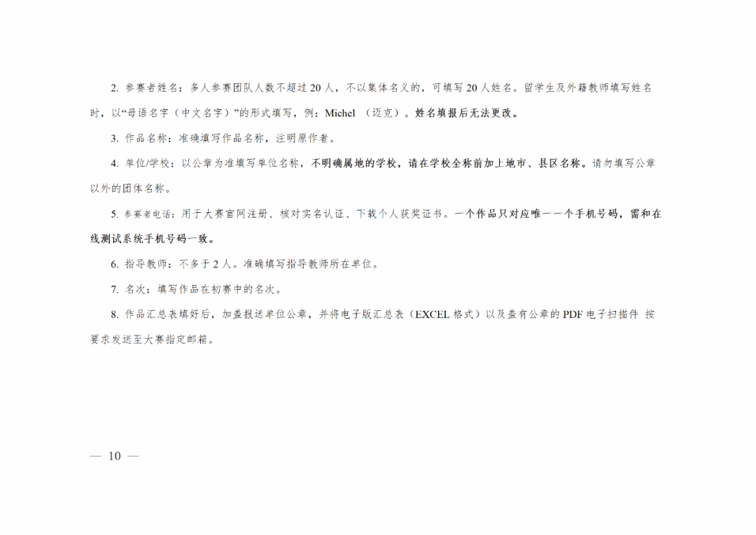 4.上传作品视频不能出现参赛选手和指导教师的名字、学校或所在单位等信息。