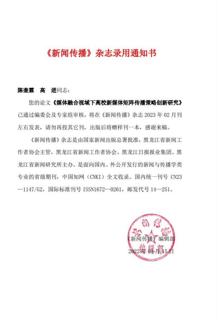 在准备学术论文时,陈奎霖花费了大量时间与精力查找资料储备知识,最终完成了四篇学术论文。同时也收到了来自第十五届中国传播学大会暨中国传播学四十周年大会的邀请函,前往苏州参与了本次学术论坛,现场聆听了来自各大高校的教授们的精彩分享。