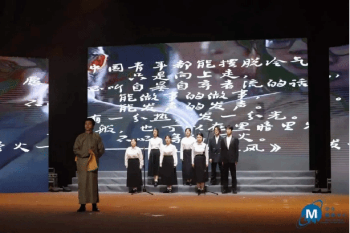 让我印象深刻的是《闪耀吧,青春的火光》,他们的诵读表演融入了四种外语,我认为这个创意很好,让我感受到了语言的魅力。大家激情澎湃的演讲,也让我体会到了言为心声的含义。