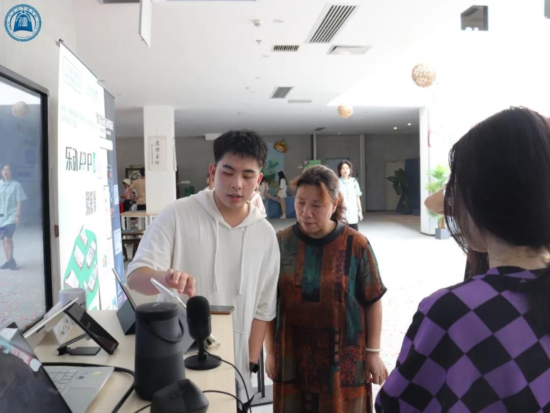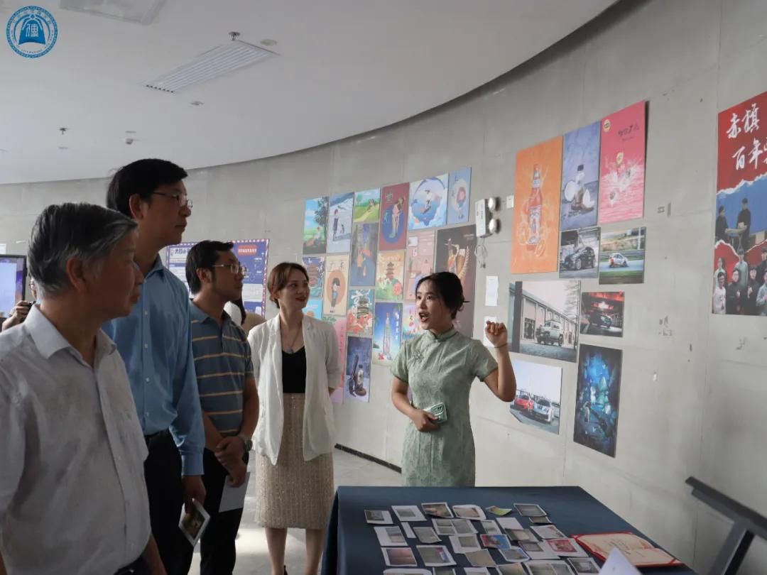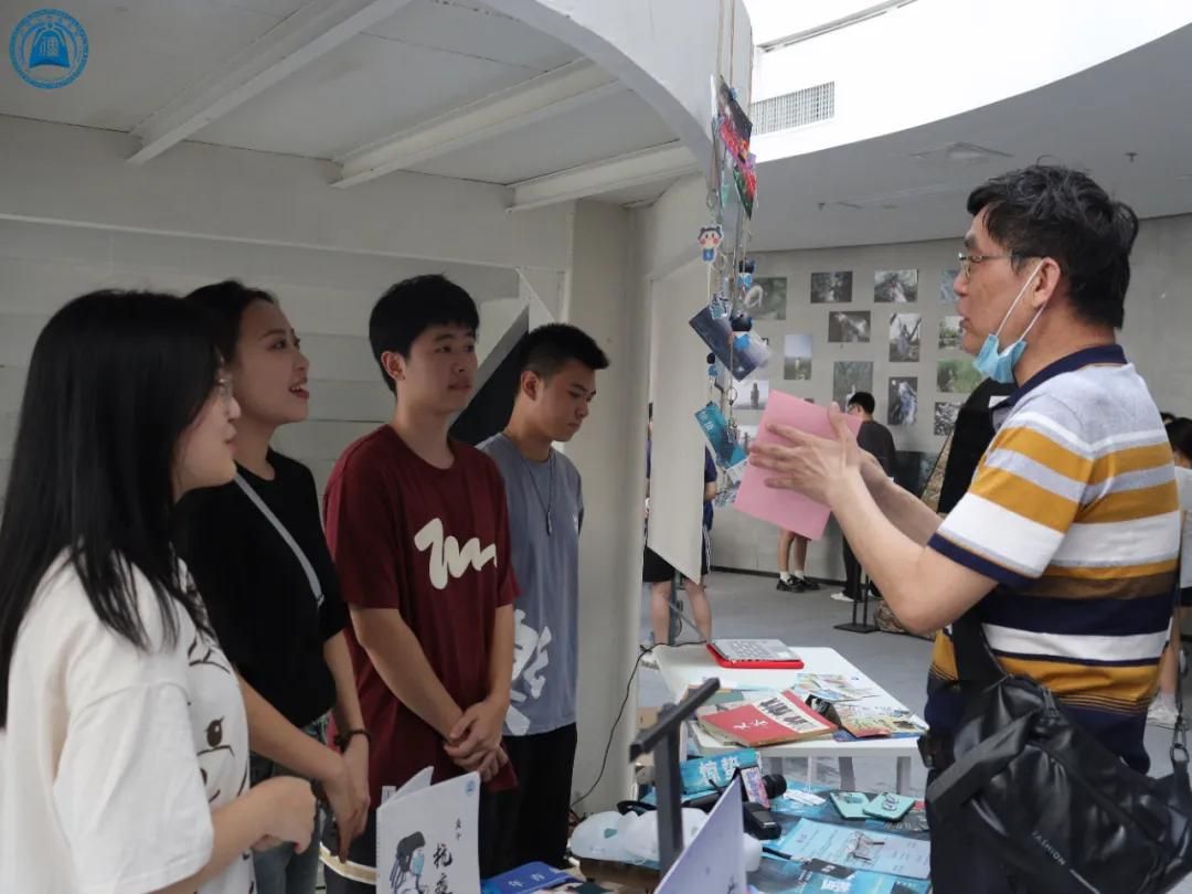 虽天气炎炎,但是师生们对此次展览兴致不减,接踵而至,展场内人流如潮。展览现场,每个区域都有专属讲解员,他们或是热心的学生志愿者,或是作品的创作者,为来观展的老师、同学们讲述这些作品背后的故事和创作历程。