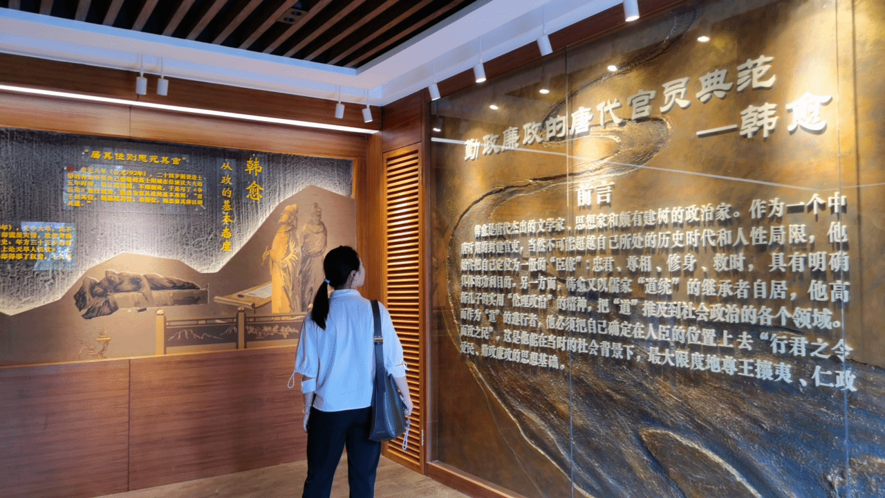 韩文公祠是为纪念韩愈而建,始建于北宋咸平二年(999年),是目前国内保存最完整、历史最悠久的纪念唐宋八大家之一韩愈的祠宇,距今已有八百多年的历史。韩祠广场上,一书卷状的石雕,上刻韩愈《劝学解》中的名言:“业精于勤,荒于嬉;行成于思,毁于随”。