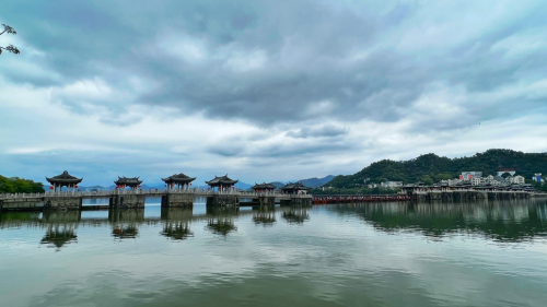 桥是水上的路,在韩江上造桥的历史,也是人跟水如何共生的历史。文传一行人走上这座始建于南宋乾道七年(1171)的古桥,聆听着历史岁月里或自然灾害或工程事故或战火摧残带给它的磨难,更感慨于这座多难的桥在潮州人民的勤劳下,屡毁屡建,以及在每次重建中发生着蜕变。桥上部分亭台楼阁成了潮州非遗的展览,陈列着潮州手拉朱泥壶、潮州木雕、潮绣、潮州麦秆画、潮州陶瓷以及综合类非遗项目,老师们无不惊叹于艺术之精巧、技术之高超,以及这座城市文化底蕴之深厚。