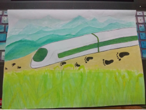 构图元素思路:“绿水青山”、“禾下乘凉”、高铁让“蜀道难”成为历史。