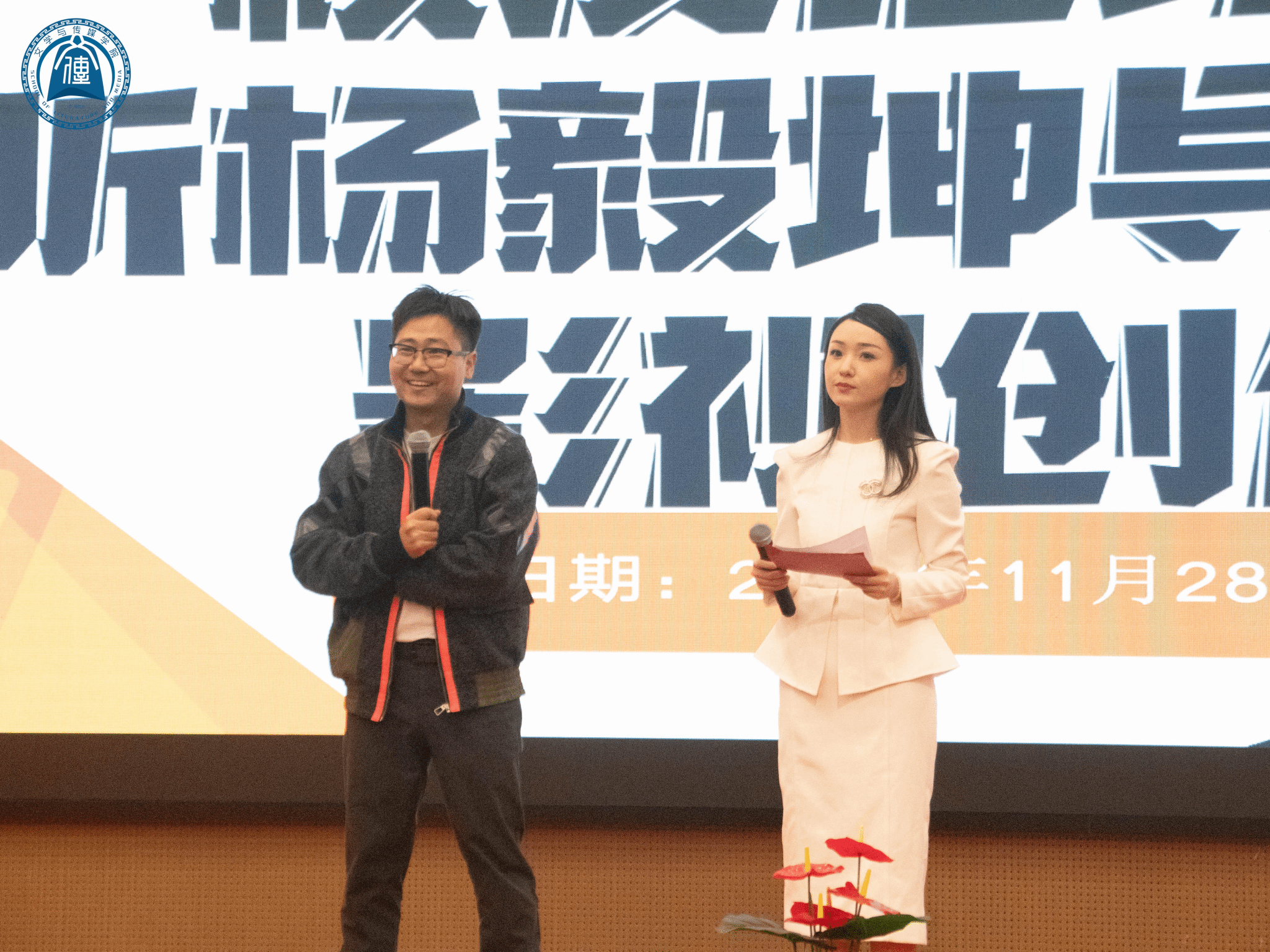 11月28日19时,B1教学楼103教室座无虚席、气氛热烈。学院特邀优秀校友杨毅坤导演莅临现场,携手对谈嘉宾周迪俊导演,为全院师生呈现了一场兼具思想深度与行业干货的光影盛宴。122cc太阳集成游戏校长助理蒋玮老师、校团委书记陈思思老师、122cc太阳集成游戏院长孙立教授、副院长游鸽副教授、校友秘书长李娜博士及汤迪超、梁欣然等优秀毕业生代表共同出席活动,本次活动由苟雪颖老师主持。