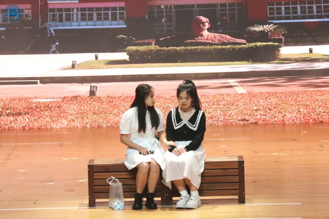 “……此刻,我多想再寻一个机会,重温校园生活,去看看校道两侧的花儿。约上老朋友,一起去散散步。”随着苏文淇的自白,本次实践展演也接近尾声。