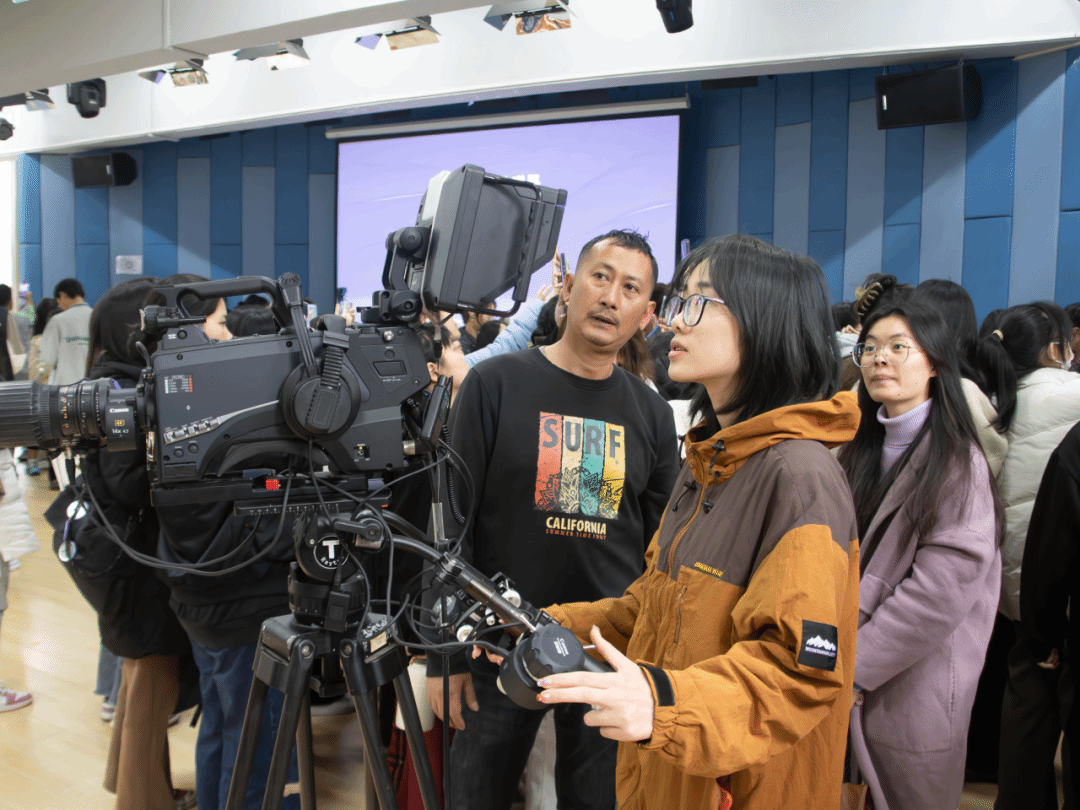 宣讲会期间,徐宏董事长全面地向同学们介绍了公司的基本情况、行业发展趋势、以及公司在直播领域的丰富案例等。徐宏董事长作为广州首批重资投入布局超高清设备的公司负责人,他强调了进入影视行业对于校企联合培养人才的迫切需求,指出行业呼唤具有前瞻性和复合能力的专业人才。他鼓励同学们:“要不断为自己的成长赋能,这样才能在进入职场时更加游刃有余。”宣讲会结束后,徐宏董事长耐心细致地为同学们答疑解惑,同学们纷纷表示受益匪浅。