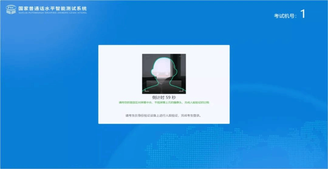 1.考生完成信息采集后,按工作人员指引进入测试室,戴上耳机,鼠标点击“登录”,进行人脸验证。