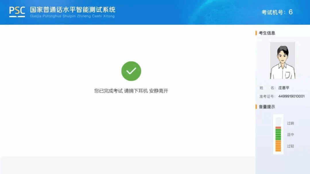 完成测试后,系统将自动提交答卷,考生摘下耳机安静离开考场。