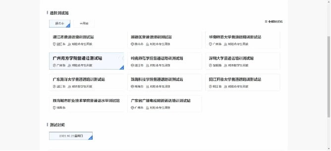 4、选择测试站——122cc太阳集成游戏普通话测试站——选择考试时间(请注意分社会人士专场和本校学生专场)——阅读报名须知——下一步;