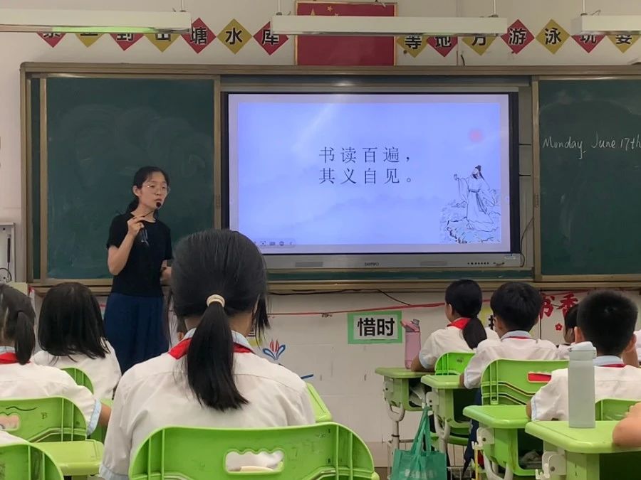 钟声悠扬,回荡在走廊。语言文字服务团队迎来了在流溪小学的最后一堂古诗词课堂。本次的课堂由语言文字服务团队指导老师石巧如进行授课,石巧如老师硕士毕业于北京语言大学,她在本周为小朋友们带来了和以往不同的古诗吟诵课堂。接下来,让我们跟随石老师一起感受在不同读法下诗词的韵律美。