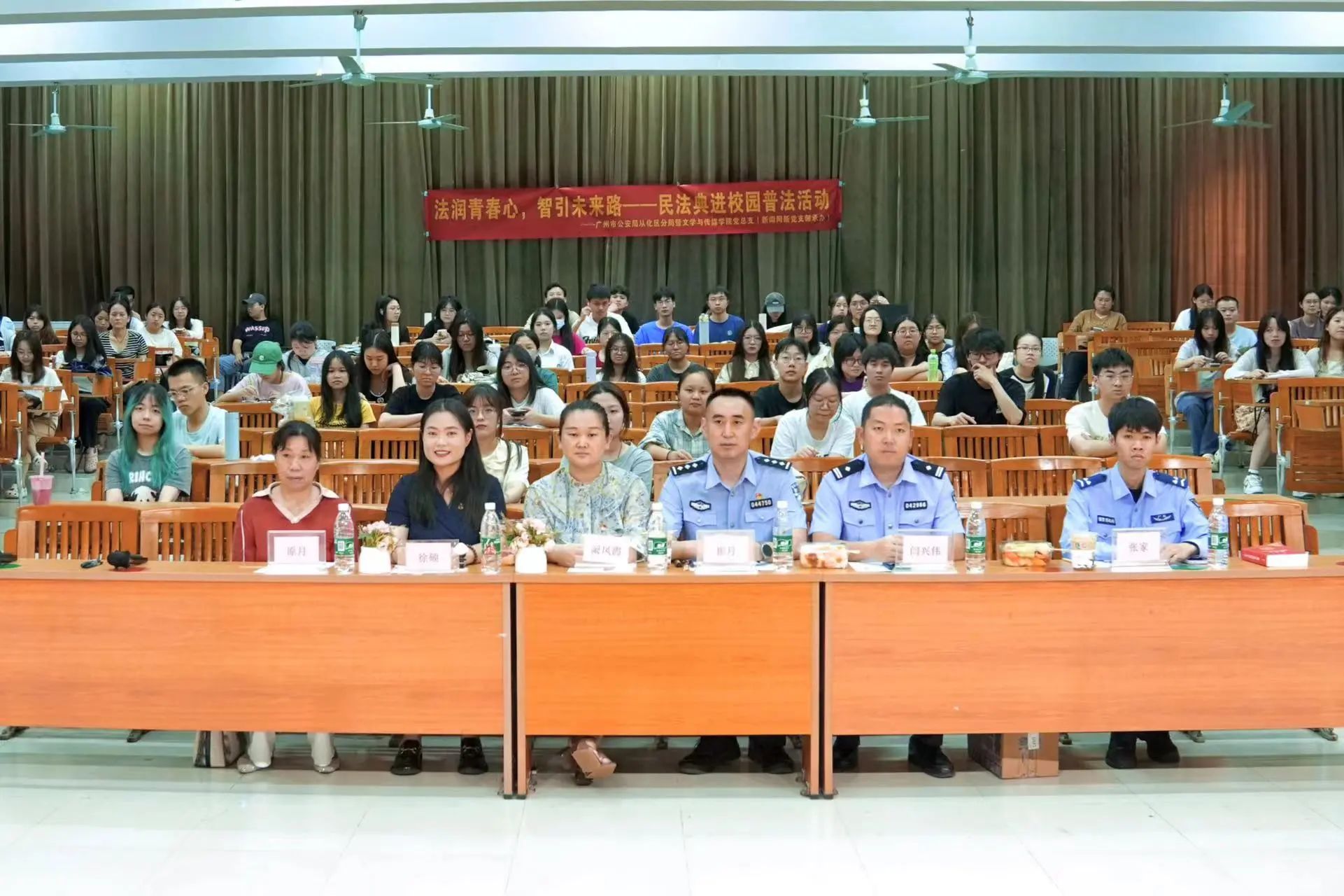 2024年5月是我国第四个民法典宣传月,为进一步加强民法典普法教育,提高学生的法律素养。本月22日122cc太阳集成游戏党总支新闻网新党支部,邀请广州市公安局从化区分局的公安民警,走入校园为师生科普民法相关知识。