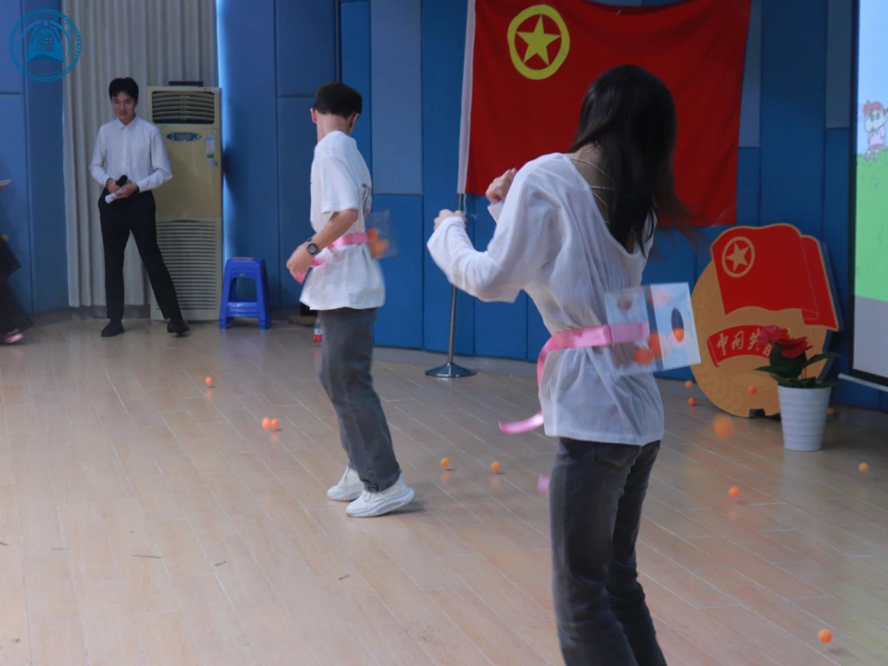 于“乒水相逢”的游戏内,同学们身手矫健,朝气蓬勃,展示风采。