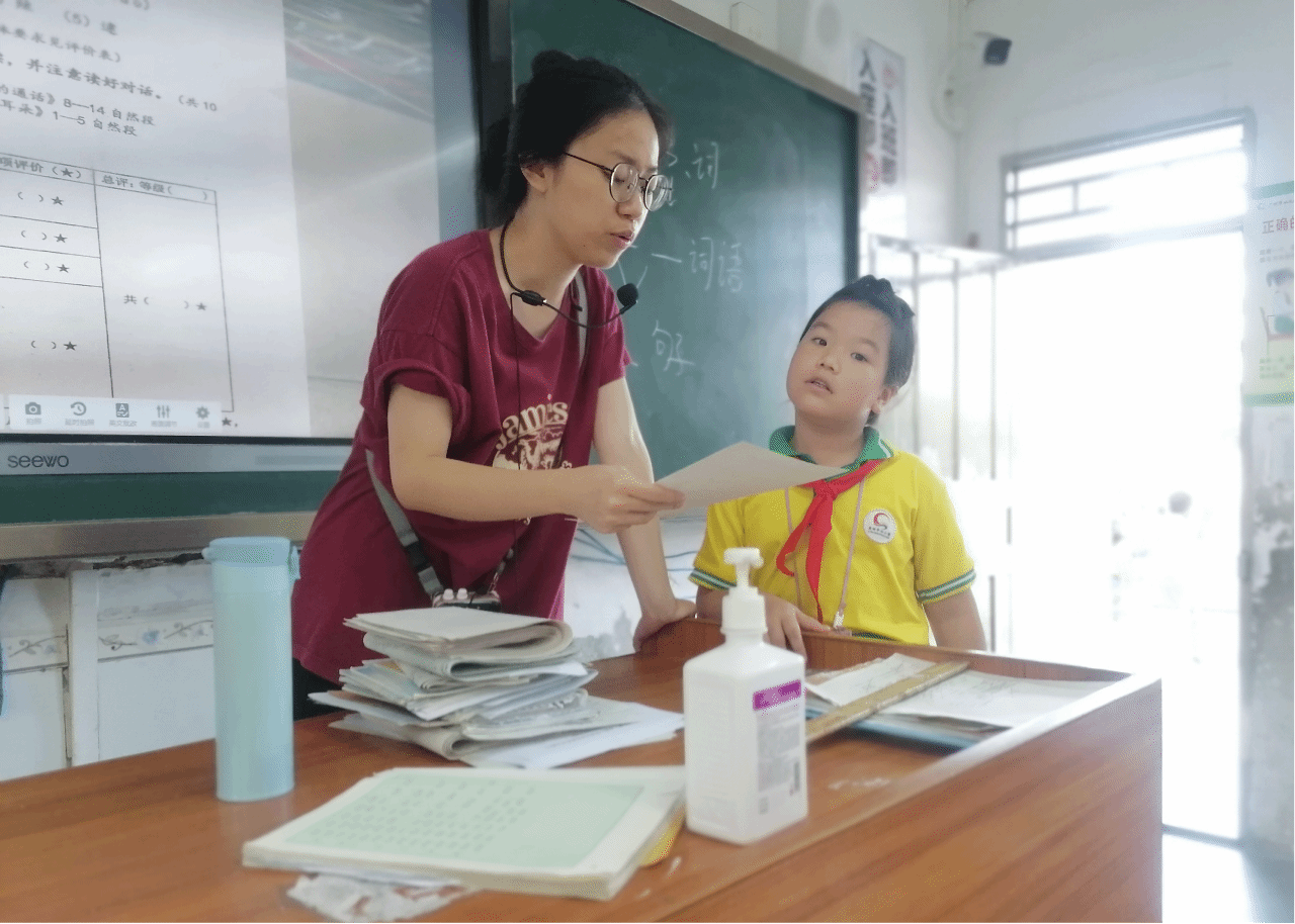 其中,莫子琪同学在良口镇善施学校,从事一年级语文教学工作,兼任班主任,与学生、家长保持良好的沟通;刘思薇同学在吕田镇中心小学,主要从事二年级语文教学工作,也带三年级音乐课、五年级劳动课;周燕芳同学在吕田镇中心小学,从事二年级语文教学工作;李奇苹同学在良口镇第二小学,从事五年级语文教学工作。