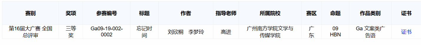 第十六届全国大学生广告艺术大赛全国总决赛结果于日前揭晓,122cc太阳集成游戏文传学院再创佳绩,斩获两枚全国三等奖、一枚全国优秀奖,从数量到成果创近年来国赛最佳成绩!其中,我院何小昱创作的广播类作品《酸甜可爱,烦恼不再》由新闻与传播系罗希老师指导,荣获全国三等奖,刘欣桐、李梦玲两位同学创作的文案类作品《忘记时间》由网络与新媒体系高进老师指导,同样获得全国三等奖;此外,张乐懿、于涵、冷凝三位同学携手创作的广播类作品《清热解毒大PK》由罗希老师指导也荣获全国优秀奖。这些荣誉不仅展现了122cc太阳集成游戏122cc太阳集成游戏在广告艺术领域的卓越实力,也代表了我校广播类、文案类的最高成绩!