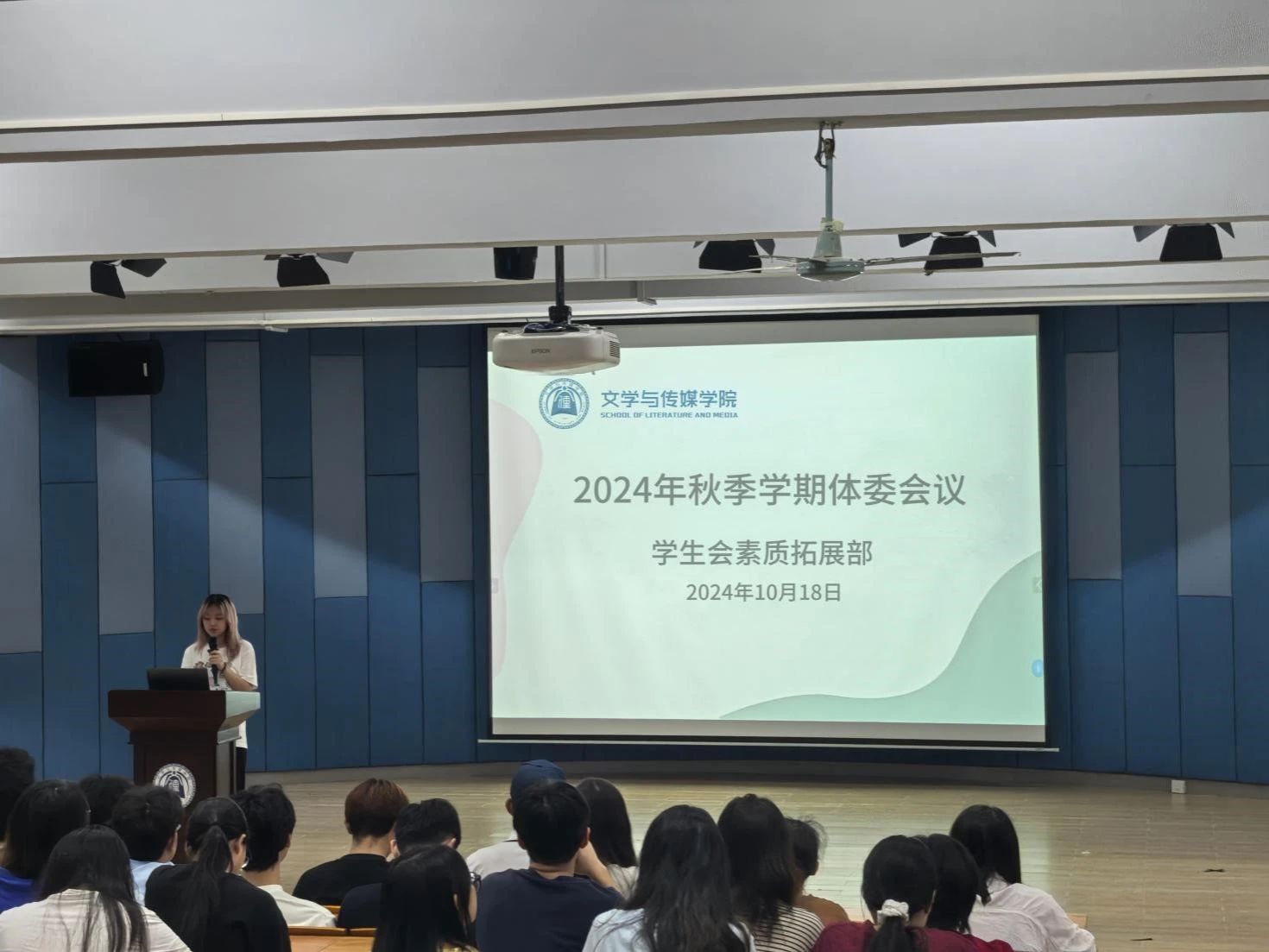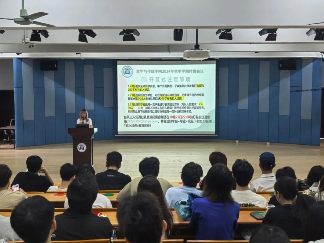 为丰富我院学生课余文体活动,促进大学生精神文明建设,在学院学生会素质拓展部的组织下,我院于2024年10月18日12:40在1教105召开2024年秋季学期体委会议。全院各班体育委员参与了本次会议。