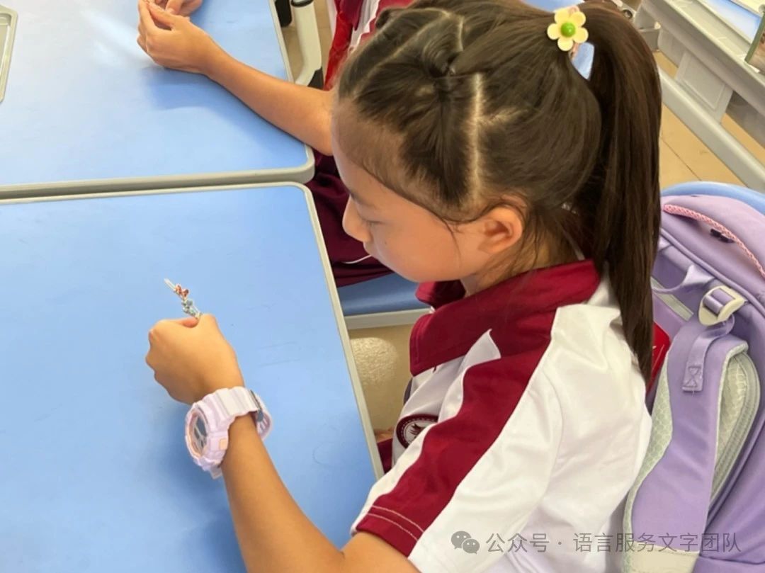 课堂接近尾声,小龙老师问道“同学们想不想亲手体验制作景泰蓝发饰呢?”同学们异口同声地回答道“想!”带着期待,小龙老师向小朋友们讲解了制作景泰蓝发饰的材料和步骤,并给同学们传看了景泰蓝发饰的样品,大大增加了小朋友们想要制作景泰蓝发饰的决心,小朋友们都开始期待即将到来的实践课堂。
