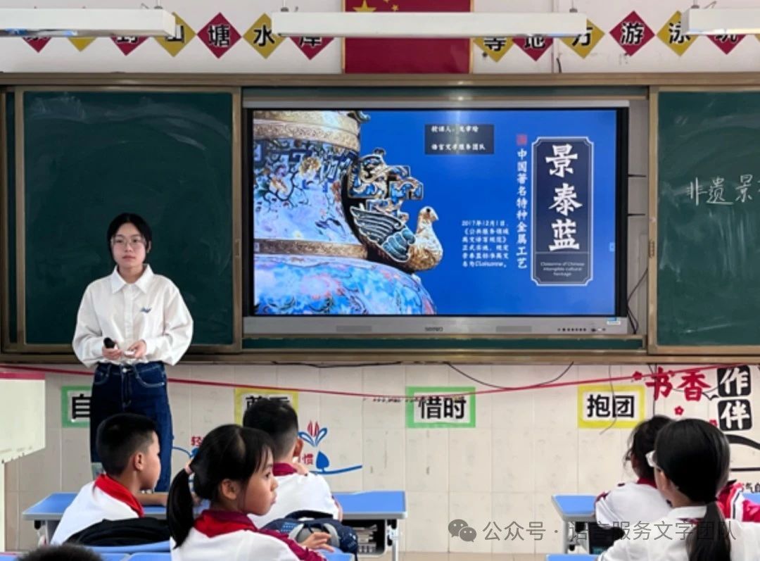 今天给流溪小学的小朋友们带来景泰蓝色彩之美课堂的小老师是来自23级汉语言文学专业的龙幸瑜同学,这节课就让我们跟随小龙老师的脚步,一起走进景泰蓝的色彩世界,感受非遗文化的魅力吧!