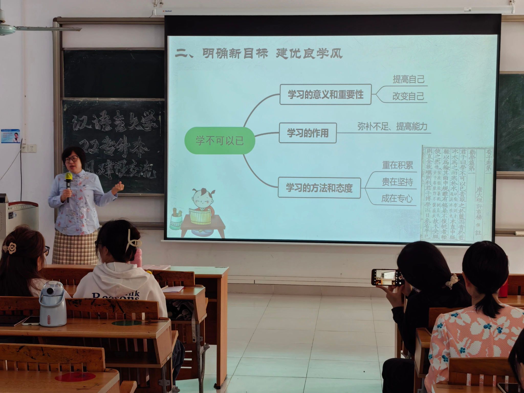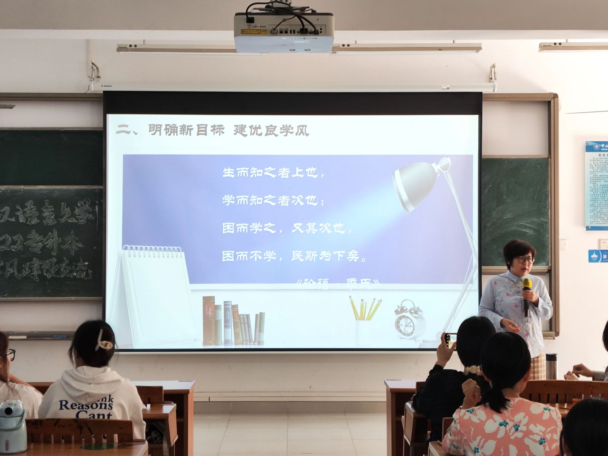 本次大会由中国语言文学系主任周凤玲教授主讲,2022级专升本汉语言文学专业全体学生参会。会上,师生们积极互动,共同探索如何进一步推动学风建设,以及如何通过这些努力来营造一个更加积极向上的学习环境,为学院的学术氛围和教育质量的提升出谋划策。