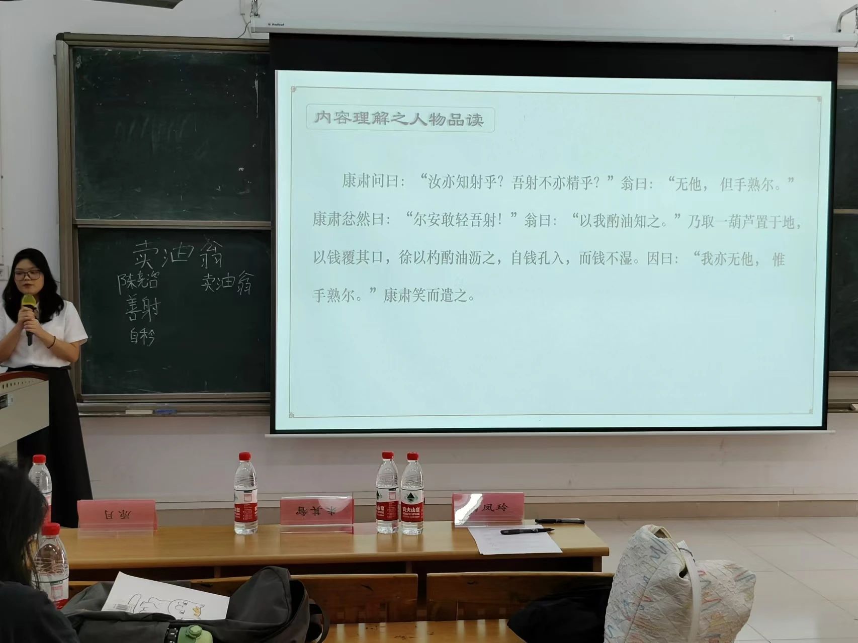历时一个月的选拔,10位选手最终脱颖而出。通过模拟课堂的形式,选手们化身为专业教师,运用情景式教学法以及合作探究法等教学方法,从一年级《守株待兔》到初中三年级《马说》再到高中《孙权劝学》等进行模拟授课。评委们也从教学方法,到教学内容对每一位选手进行提问,明晰教学内容的同时也考验选手们的临场发挥能力。