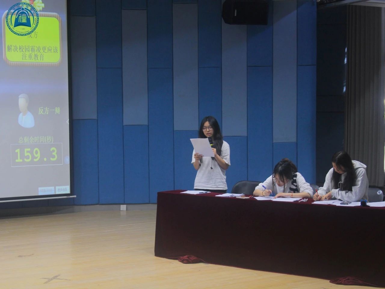 此次比赛,不仅仅在于荣誉,更在于它为学生们提供了宝贵的法治教育机会,彰显了我校对注重法治教育与法制宣传的高度重视与积极实践。在这场法治辩论赛的舞台上,每一位辩手都是法治之光的宣传者,辩手们用自己的才华与智慧,深入探讨并传播了如何正确应对校园霸凌等重要议题,让更多人受益匪浅。相信南院辩手们在未来的征程中,将继续乘风破浪,为学校创造更多辉煌。