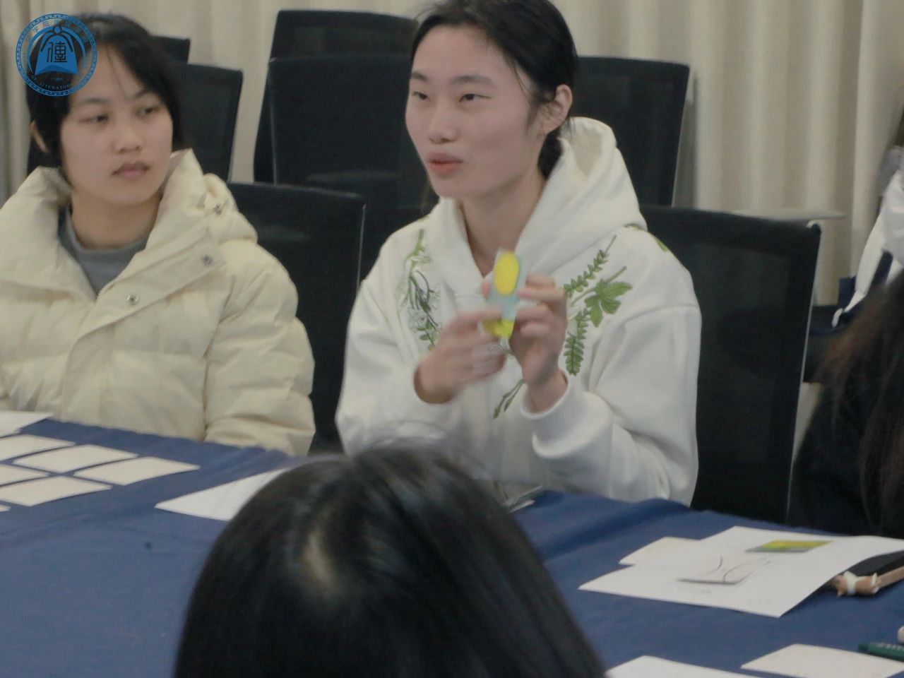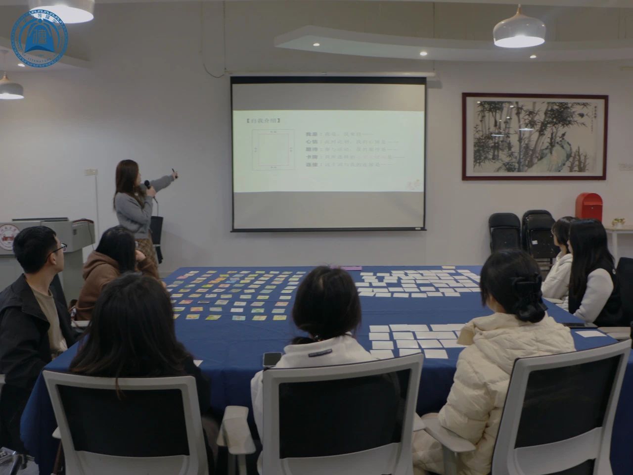 活动伊始,钟老师用温柔而又亲切的语言打破了同学们之间紧张的氛围,并介绍了本次心理沙龙的流程与OH卡的起源。随后,进入了破冰活动环节,同学们通过抽取OH卡牌上的年度关键词,以一种新颖的方式介绍自己。在这一过程中,拉近彼此的距离。