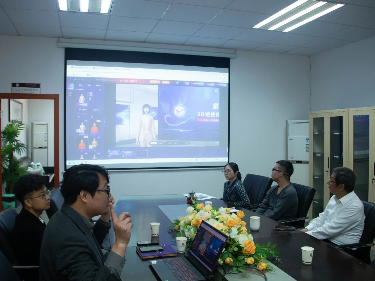 会后,为了更精准、高效地推动教学设备升级,双方一同参观了南方融媒体中心。紫为云公司傅强先生、李有志先生表示,后期会把元宇宙会展云平台应用到我院即将举办的毕业设计展中,打造线上线下同步的双会展模式。