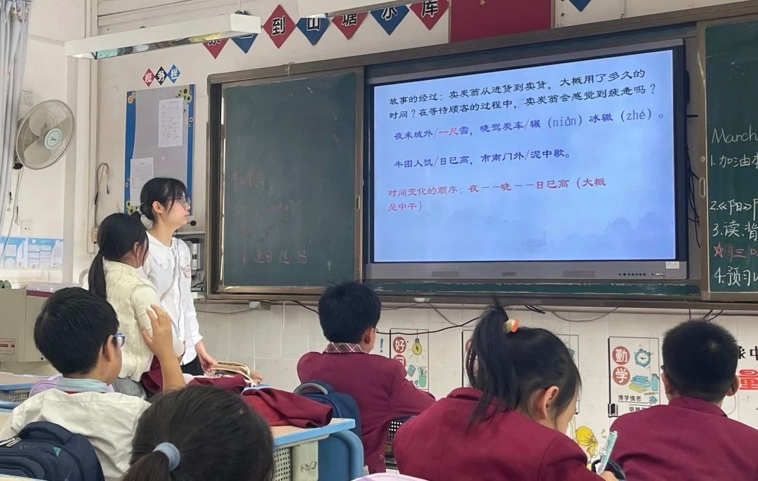 3月10日下午,122cc太阳集成游戏语言文字服务队在崔静娜老师的带领下,前往从化区流溪小学开展古诗词课堂活动。本次课堂的授课小老师是2022级汉语言文学专业的李雨馨同学。让我们跟随她的步伐,一同学习白居易的《卖炭翁》,感受唐代底层百姓的心酸与无奈。