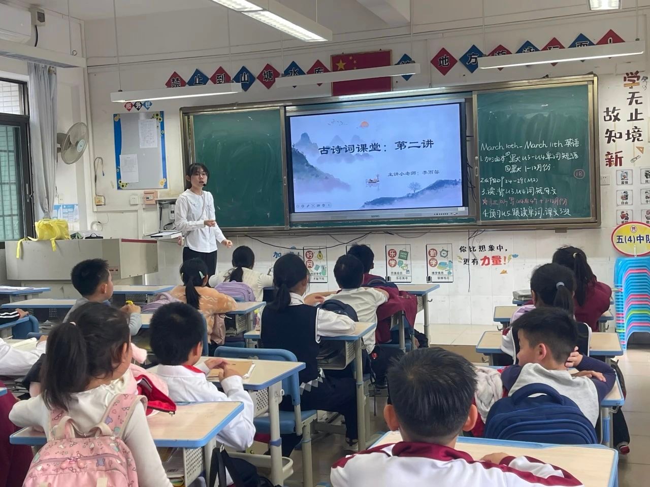 这是我第一次正式走上讲台给小朋友们讲授古诗词,兴奋之余又觉得有些紧张。在这次授课实践中,让我感触颇深的一个点是,小朋友们远远比我意料的,要有主见,有想法。