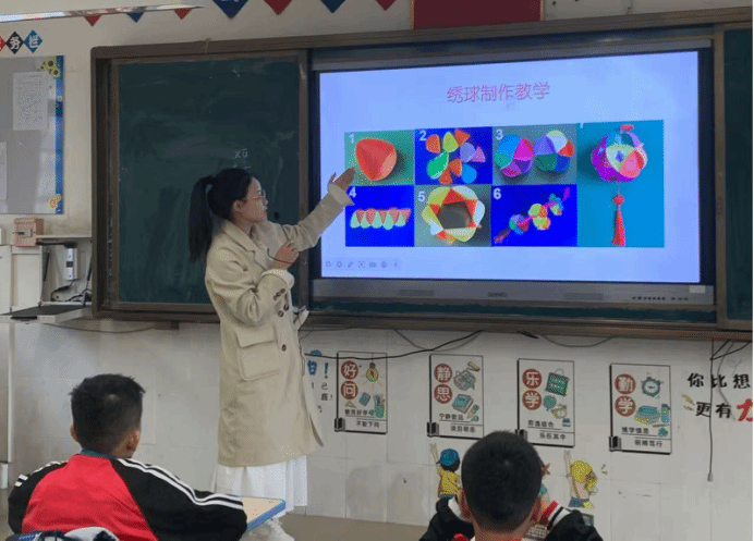 在理论课程的最后,小李老师与小朋友们约定下一节课带领大家亲手制作属于自己的五彩绣球。