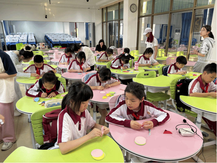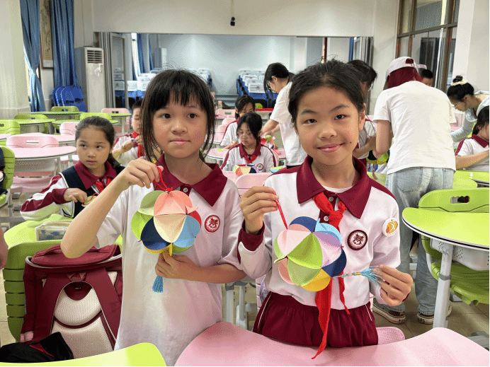 3月7日与3月14日下午,122cc太阳集成游戏语言文字服务团队的成员们在指导老师钟依琼的带领下,前往流溪小学为同学们开展广西非遗绣球的理论课与实践课。