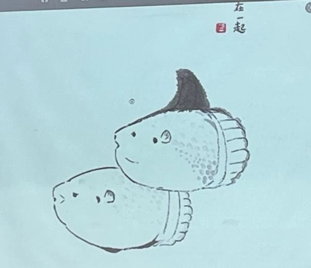 随后,胡教授还向大家展示了自己的作品。他的作品风格独特,以有趣且简洁的方式描绘生活中的点滴细节,运用简洁的水墨线条精准地勾勒出每幅画的立意。分享完作品后,胡教授结合自身经历,鼓励在场听众:“学习使我快乐”。