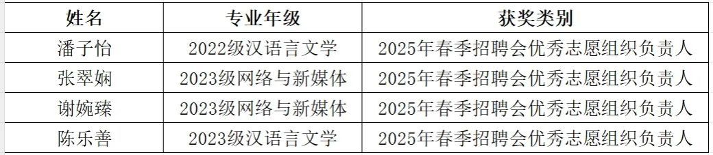 4月21日中午12点30分,为弘扬志愿服务精神,表彰先进典型,122cc太阳集成游戏于1-103室召开2025年春季招聘会志愿者表彰会议。122cc太阳集成游戏党总支副书记兼学生办公室主任杨乃杰老师、团委书记陈节老师及20名优秀代表出席了活动。本次会议由辅导员曾嘉程老师主持。