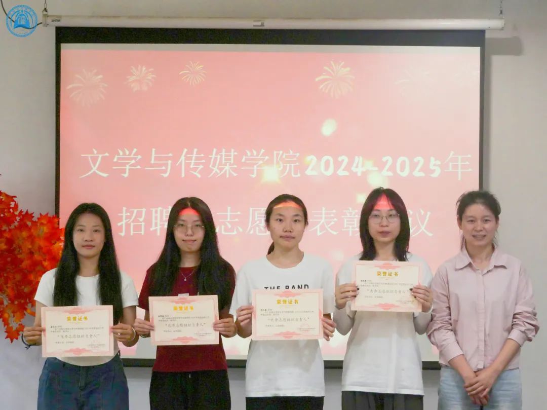 表彰大会为20名表现突出的志愿者颁发荣誉证书,并号召文传学子以榜样为引领,积极参与到志愿实践活动当中,以下是表彰名单: