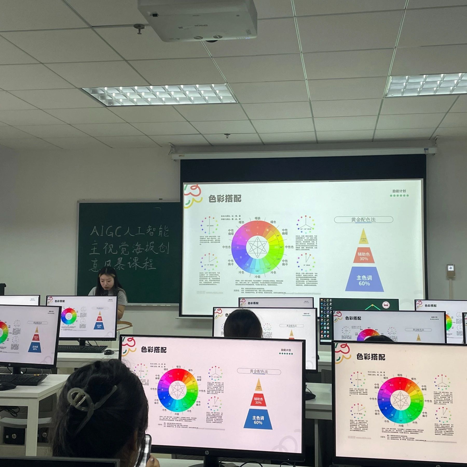 在课堂上,小老师们细致的讲解了关于艺术字体以及如何进行色彩设计。在实践环节。台下的小老师们尽职尽责,指导着学员进行色彩构图,字体搭配等等知识实践。