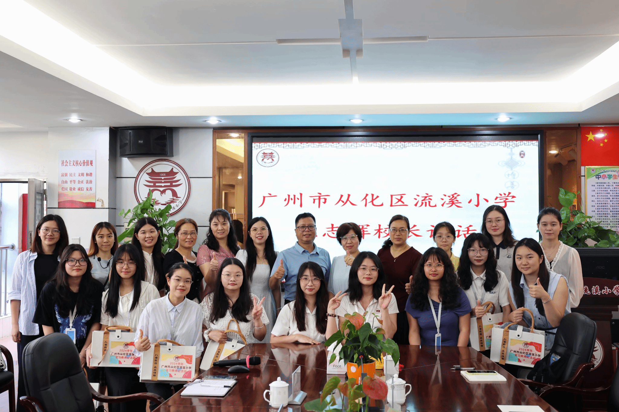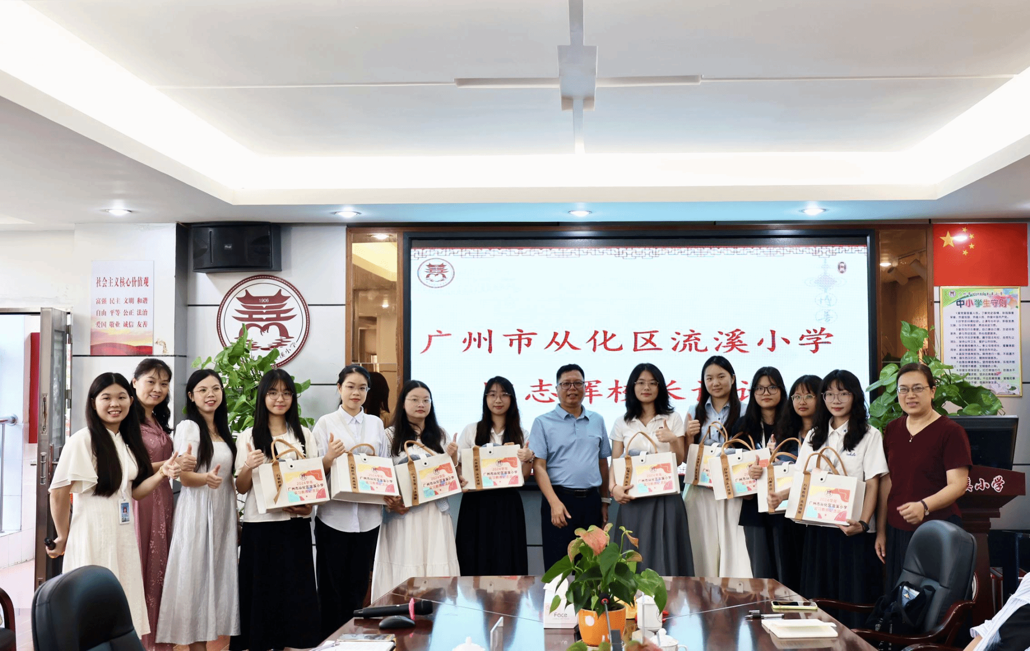 最后,周教授表示,学院将进一步优化人才培养体系,为实习基地输送更多具备扎实专业素养与良好实践能力的优质学生。同时,她再次感谢流溪小学在省级实践教学基地申报过程中给予的大力支持,并期待双方在古诗词特色课程开发、学科竞赛对接以及双师课堂建设等领域深化合作,共同探索基础教育创新发展的新路径。