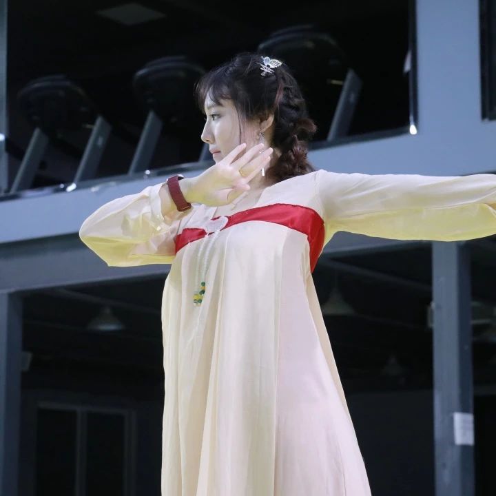 小老师在教学前对舞蹈的深刻内涵进行了一一解读,化为一个个具体的呼吸、眼神、指尖的颤动。诗与舞,在这里真正实现了“一体”,学员们用身体“写”下了对杨贵妃一生的理解。结课之际,学员们身着淡雅汉服,面染古典妆容,在悠扬乐声中自信登台。他们虽无专业舞者的技巧,却以真挚的投入和显著进步,实现了从文化爱好者到古典舞传承者的华丽蜕变,好似每一位同学都成为了一次“杨贵妃”。