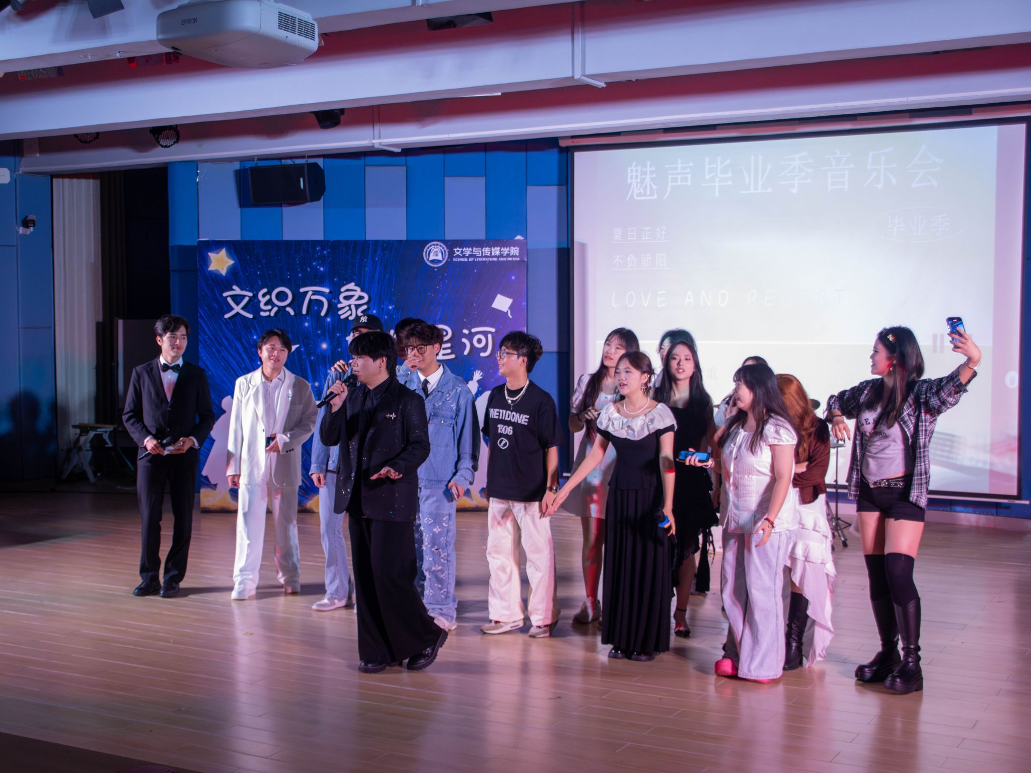 《告白气球》的前奏响起,舞台被烂漫的星光点亮,在场的观众们都不由自主地跟着旋律挥舞起手机灯光,汇聚成一片璀璨的星海。这一刻,离别的伤感被温暖的集体共鸣所替代,青春的浪漫与纯粹在歌声中永恒定格。全体表演者共同的大合唱,成为了整场音乐会最闪耀、最难忘的时光,也是对大学时光最深情的告白,为音乐会画上了圆满的句号。