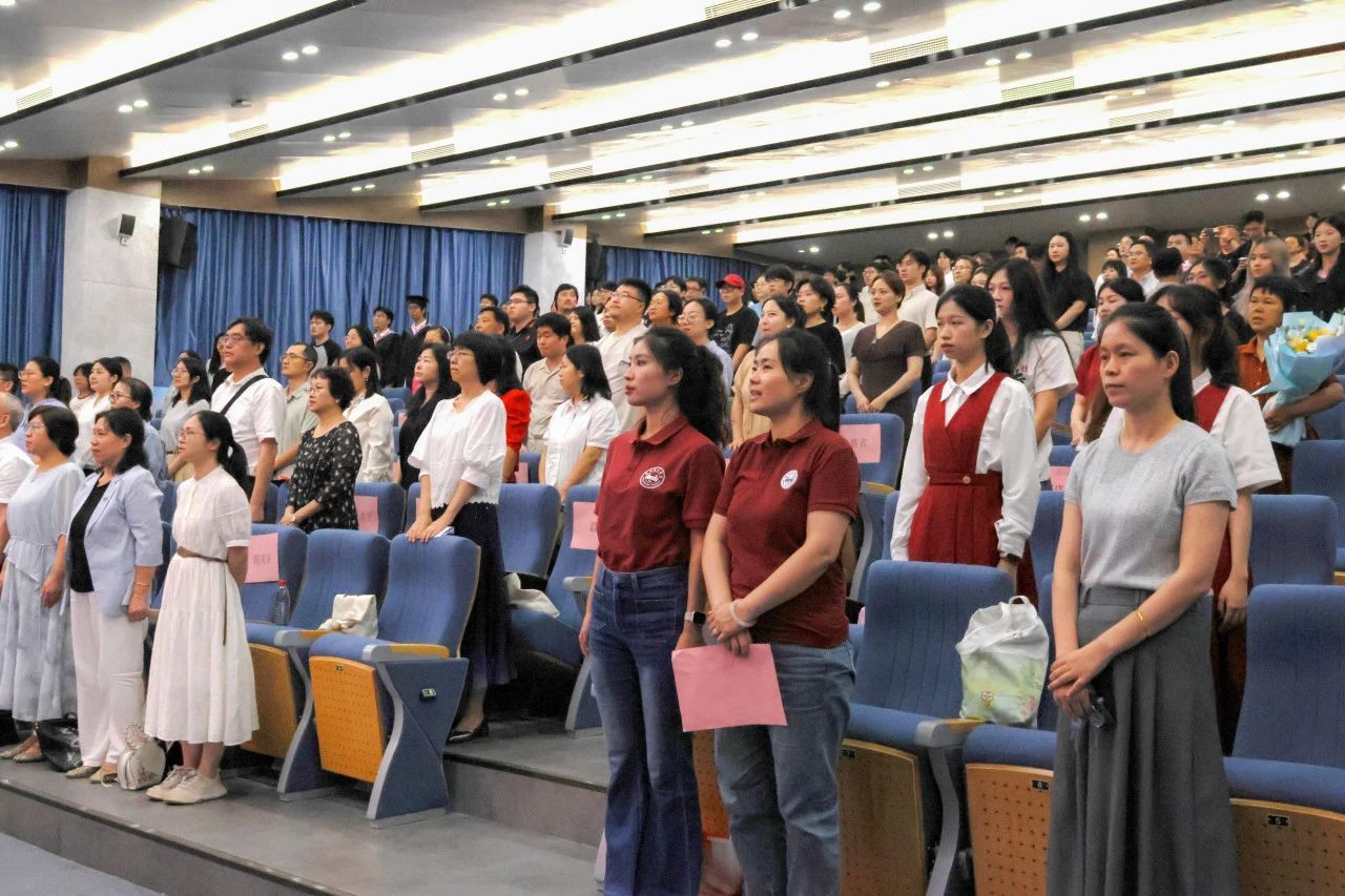 最后,在风雅合唱团和2021级辅导员深情演唱《这世界那么多人》之后,现场气氛愈发温暖而热烈。此刻,全体师生与观礼嘉宾共同唱响122cc太阳集成游戏校歌,将122cc太阳集成游戏优秀毕业生表彰大会的氛围推向高潮。