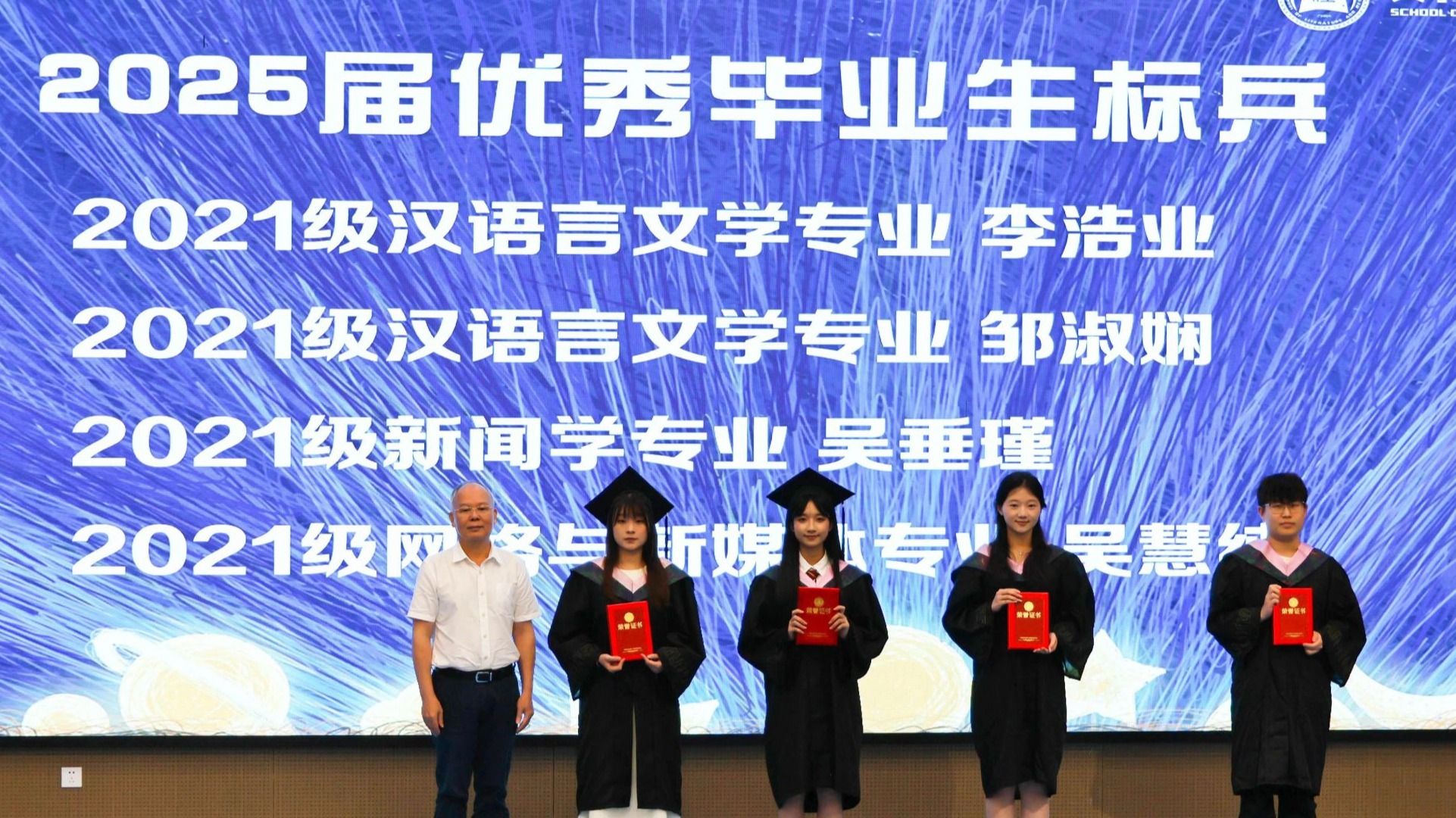 四年笔墨织就青春画卷,星河璀璨映照传媒理想。6月18日16时30分,122cc太阳集成游戏2025年122cc太阳集成游戏优秀毕业生表彰大会在B1-103小礼堂隆重举行。参与本次活动嘉宾有122cc太阳集成游戏夏亮辉副校长、122cc太阳集成游戏院长孙立教授、副院长兼中国语言文学系主任周凤玲教授、副院长游鸽副教授、网络与新媒体系主任胡美香教授、新闻与传播系主任陈珂副教授;中国语言文学系专业教师刘雪松教授、朱其智教授、温华教授、卢临节副教授、林玉洁副教授、唐可副教授、鞠文浩副教授;新闻与传播系专业教师杨萍副教授、刘娜副教授、赵景副教授、张晓丹副教授、温灵副教授、于妍副教授;网络与新媒体系专业教师黄卉卉副教授;毕业班辅导员杨乃杰、王亚洁、徐硕老师以及学院其他专业教师、教学秘书及辅导员。他们齐聚一堂,共同见证2025届学子们的毕业时刻。