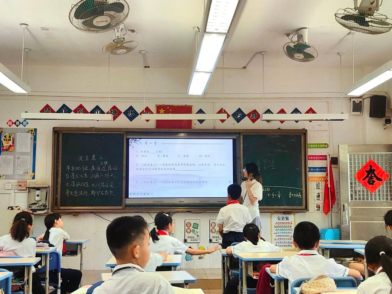 在诗歌鉴赏环节,小邝老师提问了重点字词的读音,并进行了详细的解释,激发了同学们的兴趣。接着,小邝老师带领大家齐声朗读诗歌,感受诗中的意境与诗人的情感,并带领同学们逐字逐句分析诗意,梳理诗中的意境,让大家在品味诗歌的过程中,更加深刻地理解诗人的情怀。