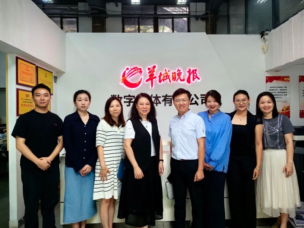 7月11日上午,我校教学质量评建与督导办公室实践教学基地负责人黄昊、教务处王禹祺老师,我院新闻与传播系主任陈珂、张晓丹副教授前往新闻学专业校外实践教学基地——羊城晚报数字媒体有限公司(以下简称“羊晚数媒”)进行调研。羊城晚报新媒体编委、金羊网副总编辑区健妍,人力资源部总监苏佩蕴等接待了我院代表一行。“羊晚数媒”全媒体制作中心业务主任彭灏明、实习生招聘负责人叶童共同参与调研座谈,双方共话合作成果,就未来深化产教融合、创新人才培养模式展开探讨,为学生铺设从校园到职场的成长通道。