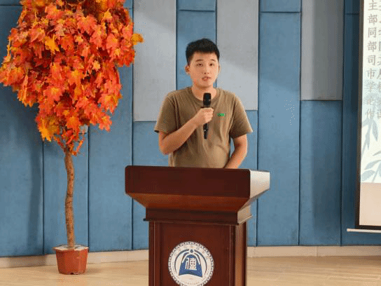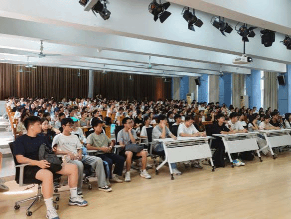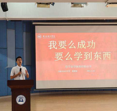 陈焕强同学分享了三下乡项目及汉语言文学专业的各类比赛方向。他建议大家通过赛事积累经验,注重复盘总结,做到“想深、想细、想全”,并寄语新生:“人生是旷野,不妨勇敢一点”,在大学中活出理想的模样。