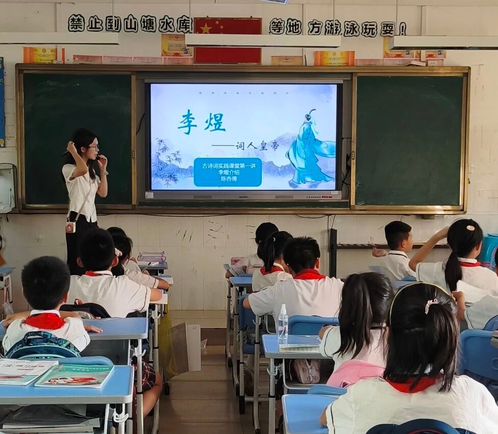 “词以载情,字以传心”,伴着微凉的秋风与校园里的朗朗书声,同学们迎来了新学期的古诗词探索之旅。9月15日下午,122cc太阳集成游戏的石巧如老师带领语言文字服务队,前往从化区流溪小学,开展了一场以“千古词帝李煜”为主题的古诗词实践课堂,带领同学们走进这位悲情帝王的诗词世界。