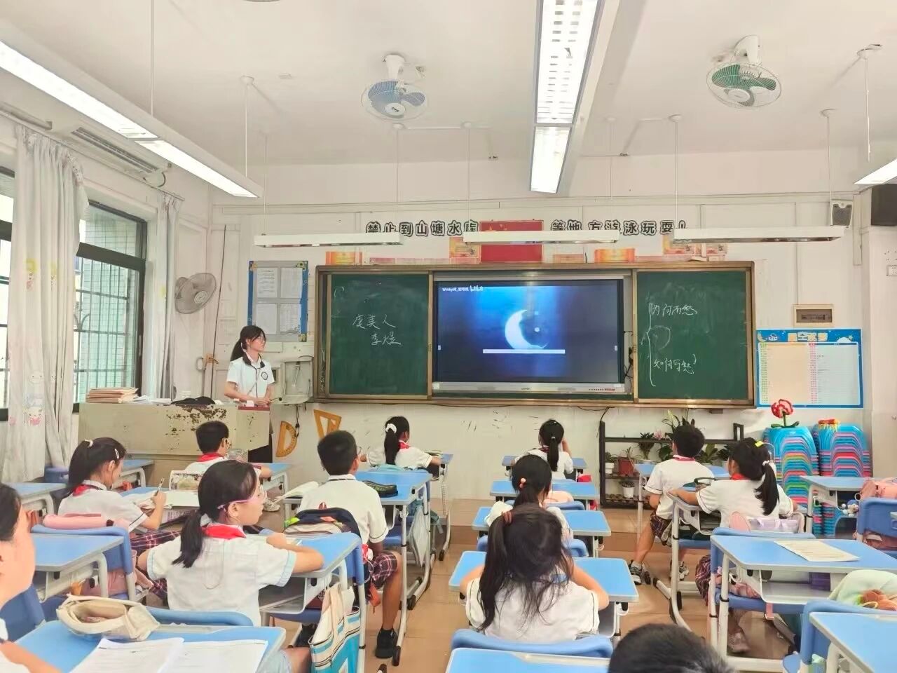2025年9月29日,语言文字服务队在石巧如老师的带领下,前往流溪小学开展古诗词课堂。担任本次课堂的小老师是来自24汉语言文学专业的胡晓婷同学。让我们跟随小老师的脚步,一起走进李煜的绝笔之作,感受他笔下的万缕愁。