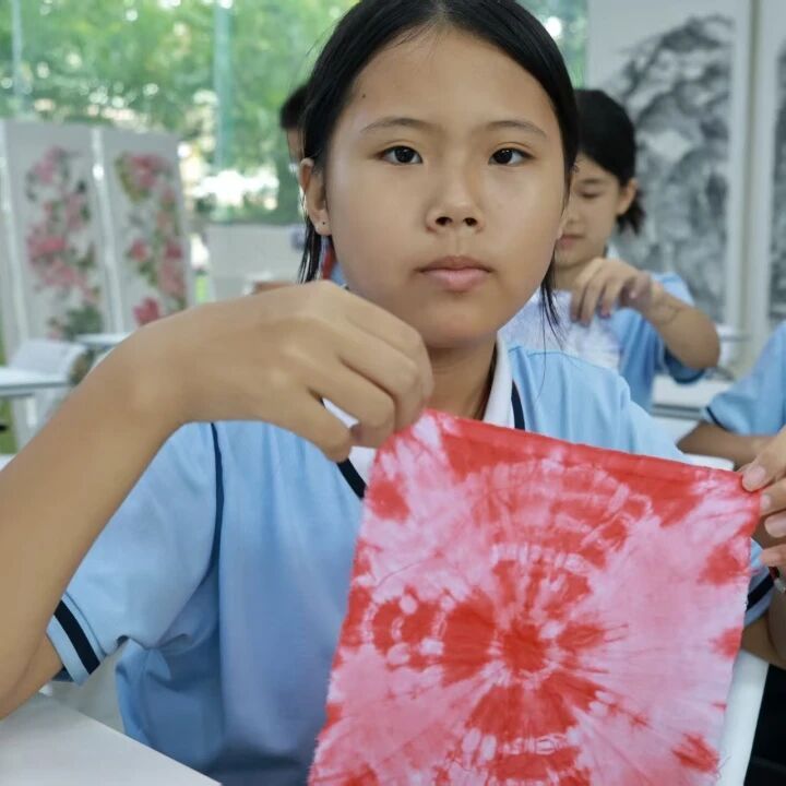 这堂扎染课,不仅让孩子们体验了动手的快乐,更让千年非遗文化以鲜活的方式走进童年。每一道绳结,都是与历史的对话;每一寸染布,都是文化传承的小小注脚。